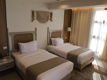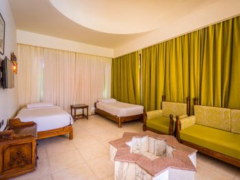 Старый, убитый отель .Ремонт в отеле делали ,наверно, в 90ые и после об этом забыли. Грязное постельное белье,пыльная старая мебель. В раковине засорение. Вода практически не уходит. Вечером попросила воды в ресепшене. Работник отправил купить в баре ( за многие годы впервые такое встретила в Египте). Выбрали дорогой номер с видом на море. И очень пожалели. Море практиктически не видно. Еда невкусная. Особенно, утром на завтрак нет выбора. Персонал- отдельная тема. Недоброжелательное отношение к гостям,.Если не дали чаевые, то им на гостей наплевать. Официанты в грязной одежде. Не понимаю, как этому отелю дали 4 звезды? Это 2 звездный, грязный, изношенный отель.! После одного дня проживания с ужасом покинули это место. Жаль потраченных денег! Не советую!!!