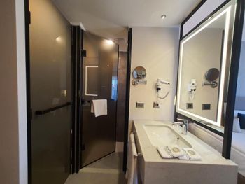 Весь персонал был внимателен и учтив, уборка на 4+, мини-бар обновлялся регулярно, работа бара 24/7 в лобби, быстрое заселение, работа ночной кухни - кто заселяется поздно и голоден, голодными не останетесь