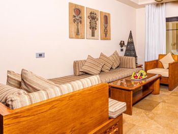 Просторные номера отеля Grand waterworld Makadi обставлены деревянной мебелью. С собственного балкона открывается вид на сад отеля. В числе удобств каждого номера телевизор со спутниковыми каналами и собственная ванная комната с душем и феном.