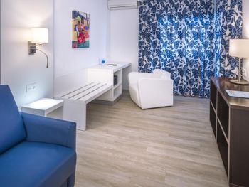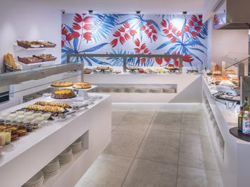 Громкая дискотека по соседству. Нет бесплатной воды на ужине. На ужине чай липтон за 2,5€. На завтраке не сможете насладиться капучино (хотя кофе хороший). Еда в целом хорошая, но однообразная. Практически отсутствует сыр. Овощи не вкусные. Официанты как бы "выгоняют" из-за столов - убирая всё со стола. Плита в номере не работает. Сейф в номере за отдельную плату. Бесплатный вайфай только на час.