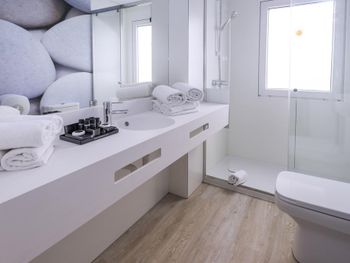 Не понравилось многое. В номере постоянно пахло канализацией, иногда ну просто невыносимо. И это сюит с двумя спальнями, который оценивается самим отелем как вип-номер! Кондиционер есть только в гостиной, в спальнях кондиционеров нет. Поэтому приходилось спать с открытыми дверьми в гостиную, что неудобно по разным причинам. Кондиционер периодически «выплевывал» куски льда прямо на пол и на стол. Кухня бутафорная - есть плита, которая не подключена к электричеству, из посуды - 4 стакана. Даже бокалов нет. Пузырьки с шампунем и мыло, когда они заканчиваются, не приносят! Их нужно самим просить на ресепшн!! (Такое вообще впервые встречаю). За пляжные полотенца нужно оставить залог - по 10 евро за каждое. Да, вип гость прям так и будет красть ваши линялые полотенца...). На руку надевают пластиковый браслет, по которому персонал отличает гостей отеля от других. Я это очень не люблю... Последний раз меня так окольцовывали лет 10 назад в Турции. Браслеты неудобные, муж во сне поцарапал себе нос этим браслетом. Столовая (а это именно столовая) для гостей центральной части отеля переполнена на завтраках. К столам очереди за едой, столики все заняты, ужас. Мы завтракали в нашей части отеля для сюит-гостей. Там не так много народу, но и выбор еды меньше.