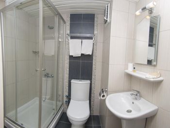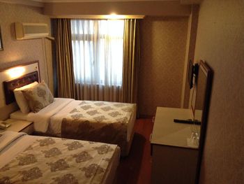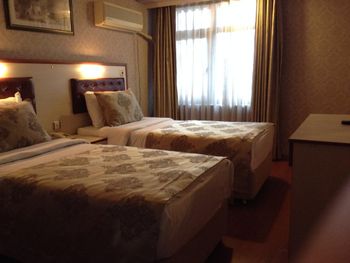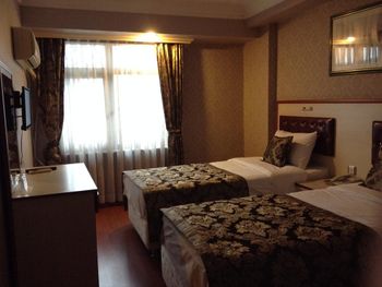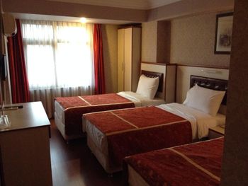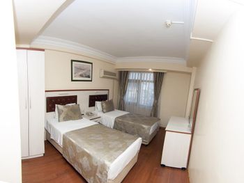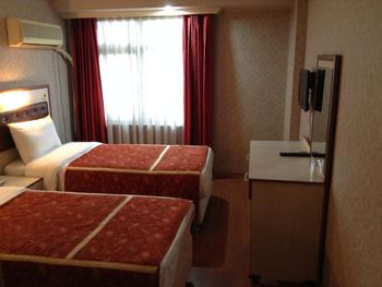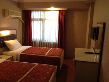 Останавливались в этой гостинице на 3 дня. Не понравилось. Мебель старая. Кровати с жесткими матрасами (очень жёсткими). Кондиционер не работал (еле обдувал тёплым воздухом), все просьбы исправить ситуацию ни к чему не привели. На ночь приходилось просто открывать окно. Целую ночь шум с улицы не давал спать. Завтрак обычный, без излишеств (яйца, колбаса, 2 вида сыра, помидоры, огурцы). Холодильник потек. В ванной крепёж к душу был сломан, мыла и шампуня не было. Мыло и шампунь принесли только после просьбы на турецком (персонал не понимает русский язык, английский понимают не все, пришлось пользоваться Гугл-переводчиком на турецкий язык). Полотенца за 3 дня не меняли ни разу. Плюсов нет вообще