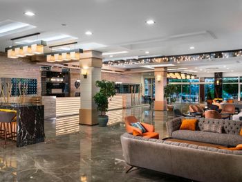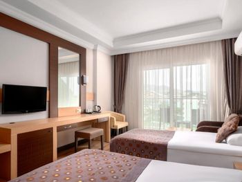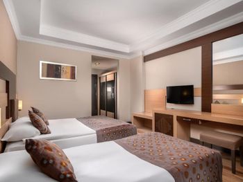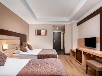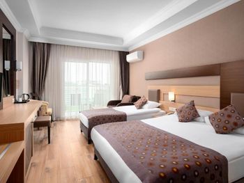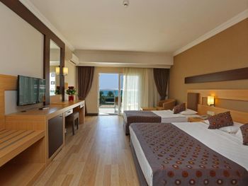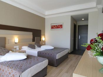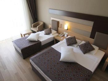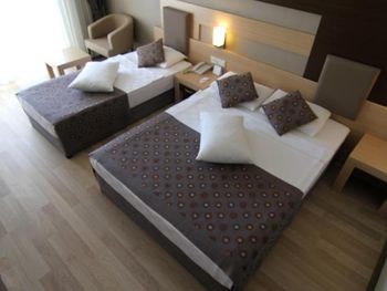 Расположение отеля близкое к морю, удобный пляж с кафе- снек-баром, однако там только пиво дают, нет коктейлей. Недалеко от отеля есть хороший торговый центр с маркетом "Мигрос", прямо напротив отеля много торговых павильонов, где можно найти всё, что угодно. Номер отличный, но мне не хватало освещения, кроме светильников не хватало люстры. Кровати действительно жестковаты, но это полезно для спины. Бельё было белоснежное, приличное. Уборку делают ежедневно, даже если не вешать табличку с просьбой. Еда по " все включено " на завтраке - почти одинаковая, но полезная, а вот про обеды и ужины- очень даже разнообразная, отлично! Из сладкого лучше всего национальная пахлава и торты( пирожные так себе) Фрукты: виноград, груши, дыни, яблоки, сливы. Мясо курицы в разных вариантах приготовления, рыба тоже не в одном виде, говядина, мясные запеканки и всякие фаршированные овощи, всего не перечесть. Колбасу лучше не есть, как и смеси салатов ( проблема для живота). В целом ресторан понравился, очередей не было! В баре неплохо: виски с колой.
