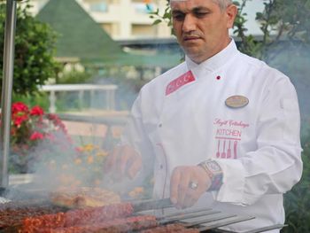 Кормят хорошо, на ужин давали морепродукты, шашлык, донер, все свежее и вкусное. Просторный бассейн, удобные беседки в тени деревьев. В номере опрятно, все удобства в наличии.