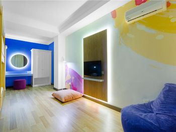 Освещение в номере. Телевизор старого типа (не андроид, не смарт), русские каналы не работают, флэшку или usb не подключить, поэтому берите с собой ноутбук или планшет, если хотите смотреть что-то своё. Нас поселили на 5 этаже, с западной стороны- соседний отель ежедневно в 21ч устраивал дискотеки до 23ч так, что невозможно громко в закрытом номере. А на балконе, если дождь, мокро и скользко, крыши нет. Пиво разбавлено, но на вкус неплохое( муж сказал) Коктейли ( два- подобие мохито и секса на пляже)- химия не вкусная. Благо мы набрали в Дьюти фри своих напитков!