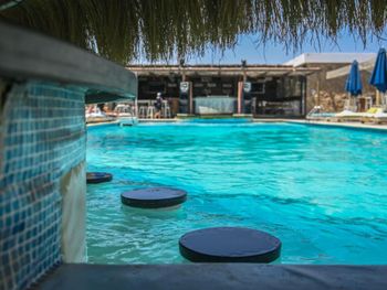 Бесплатный вход на пляж, где есть джакузи и бассейн. Песчаный вход в море.