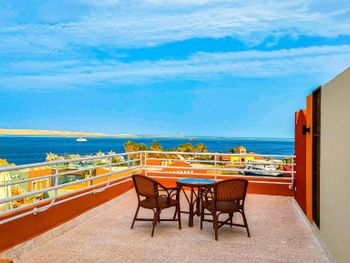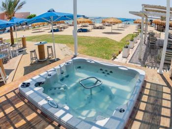 расположение отличное, прям в порту. посещение blue beach входит в стоимость проживания, пляж отличный, куча кораллов, можно плавать с маской. на набережной много ресторанов, правда везде одинаково невкусно. за едой лучше идти на рыбный рынок перед мечетью или в любой рыбный ресторан на соседних улицах (не в марине). персонал вежливый, иногда навязчивый, здороваются каждый раз, как входишь-выходишь. бутылку воды дают каждый день, пляжные полотенца в наличии, шампуни-мыло, чай