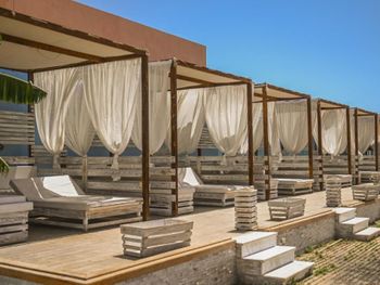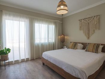 Просторный номер, красивейший вид на море, кухня, ежедневная уборка. Очень вежливый персонал. Каждый день приносят воду, кофе, молоко. Бесплатный вход на пляж, где есть джакузи и бассейн. Песчаный вход в море. Для семьи просто идеальное место.