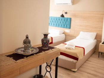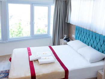 Номер был оооочень грязный (в ванной комнате были следы от обуви и черные кучерявые волосы). Уборку в ванной сделали только по запросу один раз, когда мы только заселились и крайне удивились этим жутким волосам!!!! В первый день не было постельного белья (пришлось спать на подушках без наволочек, на них были какие-то желтые следы от пота, пришлось застелить полотенцем, чтобы их не касалось лицо). Так как в первую ночь было прохладно попросили второе покрывало (так как на кровати спали вдвоем), так и не получили его за все дни пребывания (точно также как и полотенце для ног, хотя просили его несколько раз). Шампунь, гель для душа, туалетная бумага быстро закончились. Но так как уборку в нашем номере за все время проживания никто не проводил, приходилось покупать все самим (хотя опять же просили сделать уборку, дать полотенца и прочее несколько раз, но услуги так и не были оказаны). Стена, которая граничит с ванной пахнет плесенью, потому что там протек кондиционер. Из-за сырости и затхлости в номере у меня начался кашель. В номере жуткая слышимость. На ресепшене постоянно по ночам звонит телефон, но на него почему-то никто не отвечает. Интернет вылетает постоянно. Это действительно тот отель, куда не хочется возвращаться. Старались проводить в нем минимум времени. Не сменили отель только по той причине, что на территории Турции в тот момент не работал не букинг.