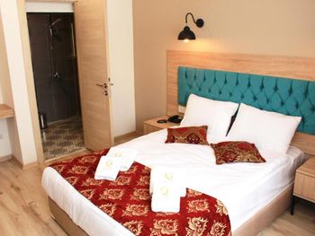 понравилась цена за номер семейный на неделю 170 долларов...очень удачное расположение отеля рядом с цистерной феодосией и голубой мечетью ......очень удобная и мягкая кровать размера кинг сайз....я думаю за такие деньги можно особо не придираться....главное удобная кровать и наличие горячей воды в номере....персонал реагировал на все наши просьбы