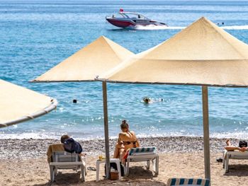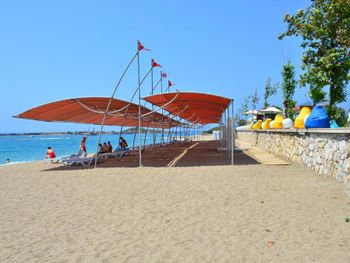 на пляже тоже есть возможность перекусить от отеля, это удобно) Возят транспортом на море