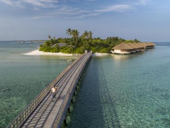 Достаточно крупный ( по Мальдивских меркам) остров около 3 км., соединённый 1 км. мостом с соседним. Есть возможность погулять и поездить на велосипеде. Можно заказать электрический багги и добираться до нужного места на нем