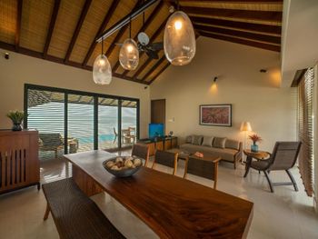1) не понравился сервис менеджмента отеля: бронировали на одного взрослого и ребёнка, а счёт присылают на двоих взрослых и ребёнка 2) бронируем виллу на стороне «восход» (там в июле океан гораздо спокойнее), а размещают на другой стороне 3) питание не соответствует высшему уровню, без изысков 4) при спуске в море из нашей виллы был разбросан крупный строительный мусор (фото прикладываю) 5) в номерах не производят вечернюю уборку ( подготовку комнаты ко сну) 6) виллы внутри немного аскетичны, не хватает декора для уюта 6) на Мальдивы прилетаем не первый раз, здесь был худший сервис. К обслуживающему персоналу никаких вопросов нет (все максимально вежливые и услужливые). Однако в нашем случае отвратительно сработала Служба размещения, а также заметно, что в отеле на всем экономят.