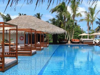 Океан везде по щиколотку! Поэтому там два огромных бассейна ! Но приехать на Мальдивы чтобы плавать в бассейне это бред!! Очень плохой океан, водоросли, камни и кораллы ! Мало рыб , много насекомых! Комаров туча и муравьев! Купаться негде совершенно! Очень все бедное нет ощущения Мальдив ! Бедные рестораны , бедная однообразная еда! Уверена если кто-то первый раз поехал на мальдивы и попал в этот отель , больше не вернётся и разочаруется в Мальдивах совсем! Не советую это место! Даже бесплатный трансфер, который плохо организован, и апгрейд до самой большой виллы не скрасил наш отпуск(((( увы это были зря потраченные не малые деньги ! Ещё нас хотели обмануть , у нас были включены завтраки и нам сказали что чтобы перейти на тариф -завтрак обед и ужин, нужно помимо стоимости обедов и ужинов заплатить ещё 400$??‍♀️ на вопрос за что?! Никто не смог мне ответить и после долгих разборок не стали брать 400$. Ещё напрягает что за завтраком каждый сотрудник ресторана спросит номер виллы , ни один на входе, а каждый !!!