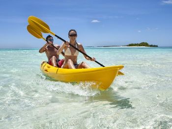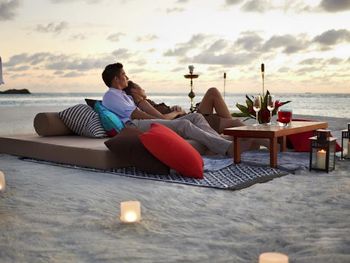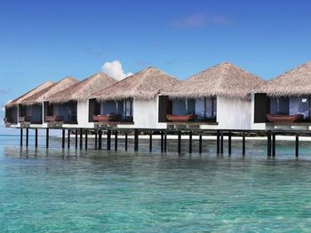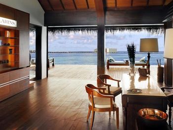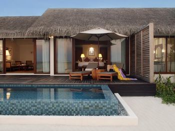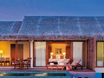Брали виллу на сваях на воде, очень понравился свой персональный заход в воду. Хорошо организована логистика - как встреча в аэропорту Мале, так и перемещения по двум островам.