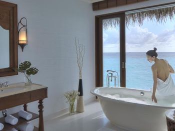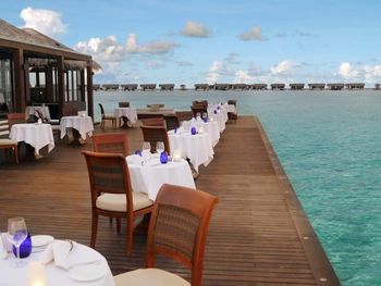 Был на Мальдивах наверное больше 10 раз. Этот отель оказался лучшим во всем! Потрясающие рестораны (основной, французский, итальянский). Несмотря на систему "все включено" еда на уровне ресторанов высокой кухни: по меню, красивые подачи, очень очень вкусно и изысканно. Правда ограничено 2мя подачами в обед и тремя в ужин, но нам более чем хватало (а я вешу 100кг). Для любителей нагребать себе в тарелки есть ресторан с шведским столом. В пляжных барах готовят настоящие коктейли из хорошего качественного алкоголя (тоже включено). При заезде: регистрация происходила прямо на вилле Вилла на воде на юго западной части острова. Идеальная возможность плавать прямо с виллы (правда нужно учитывать течение во время приливов и отливов). Отель расположен на двух островах соединённых километровым мостом. Выдают велосипеды. Можно вызывать багги. Приезжали быстро. Часто мы выходили пешком и подсаживались в попутные багги. Идеальные пляжи без течений и с белым мягким песочком на островочке между отельными островами (там и бар есть) и на северном острове с западной стороны сразу за бассейном. Такого количества морской живности я не видел ни где на мальдивах. Акулки, черепахи, скаты, проплывали мимо виллы по несколько раз за час. А вот раков отшельников почти нет. Удивительно.