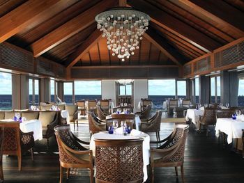 В пляжном баре, частично погруженном в бассейн, подают легкие блюда и коктейли в островном стиле. В ресторанах The Dining Room, Sunset Grill и Falhumaa подают разнообразные изысканные блюда интернациональной кухни.