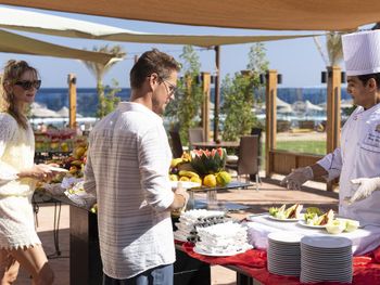 Дважды в неделю в отеле The Three Corners Sea Beach проводится вечерний «шведский стол» с блюдами интернациональной кухни.