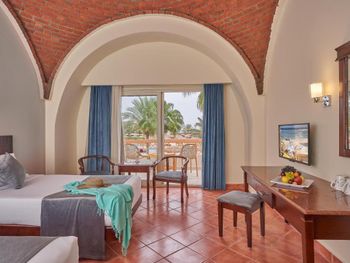Была небольшая странность с заселением, оставила некоторый осадок на душе. Заранее ничего не бронировала, нужна была только одна ночь перед вылетом, спросила цену за ночь, параллельно просматривая цены на букинге. Цену назвали какую-то чрезмерно высокую, спросила, может чуток скинут, так как "все включено" мне не нужно, или продадут хотя бы по цене букинга. Наотрез отказались! Сказали, ну так бронируй по букингу, если видишь там ниже. Я забронировала прямо в холле их отеля, и что получилось?: доп. сборов и такс насчитали мне еще как пол суммы сверху, и вылилось действительно подороже, чем в букинге. Но сил ругаться не было, заселилась, хотя, на мой взгляд, неоправданно дорого для Египта, хотя сам отель мил и симпатичен и мне действительно понравился. Кстати, после бронирования через букинг отношение стало таким любезным, прям как к родственнику. Слышала от других, что при бронировании за несколько месяцев цена может быть в 2 раза ниже, чем у меня, вот тогда совсем идеальный отель будет. Кстати, жутко не понравилась невероятно завышенная цена за трансфер в аэропорт, который в 5 км от отеля! Пришлось идти ловить такси на улице, в несколько раз дешевле обошлось.