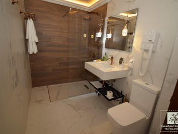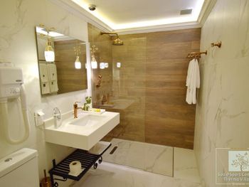 Я заранее заказал через Букинг номер с двумя одноместными кроватями...так как приезал с другом. Но Термо-эко отказал и дал вопреки утверждённой заявке номер с одной общей кроватью. Это очень неудобно. Получается Термо-эко продал мой забранированный номер и мне дал то, что у них осталось). Это не уровень хорошего отеля!!!