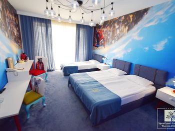Дети с бассейнов не выходили , мы были зимой и людей было много я представляю что творится летом , комната для спорта , теннис маленький, детская комната , дети остались в восторге