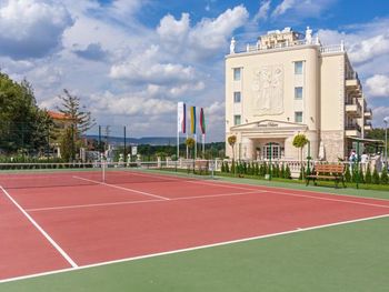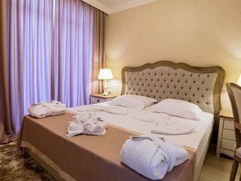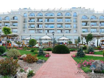 Отель Therma Palace - Privat Beach & Free Parking, отличающийся уникальным дизайном, находится в 5 минутах ходьбы от пляжа в городе Кранево. К услугам гостей бесплатный открытый бассейн и номера с кондиционерами и бесплатным Wi-Fi. Гости могут бесплатно посещать сауну, ароматическую паровую баню, соляную комнату, гидромассажную ванну, а также открытый и крытый бассейны.