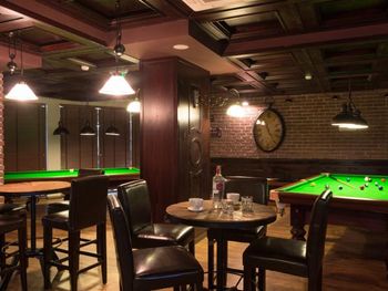 Какие то не понятные мужчины которые сами говорят что они работники и каждый вечер играют в бильярд , однажды спустились в бильярд где играли мы и стали нас выгонять якобы мы играем второй день а до сих пор не оплатили поэтому либо должны оплатить сейчас либо освободить бильярдный стол (хотя нас оформлял администратор на рецепции и записала счет на номер). Мы напряглись , это точно ПЯТИЗВЕЗДОЧНЫЙ отель ???? Вечер был испорчен.