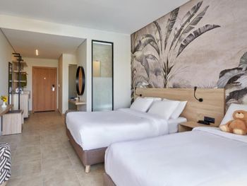 Уставшие номера. Пляж не безопасный для маленьких детей. Оплата за раннее заселение, при пустом отеле