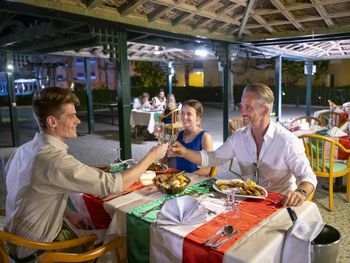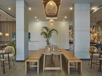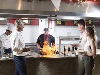 В главном ресторане отеля проводятся тематические вечера, посвященные разным кухням мира. Легкий обед можно заказать в пляжном ресторане, а блюда итальянской кухни подают в ресторане Dolce Vita. Также при отеле работает 3 бара.