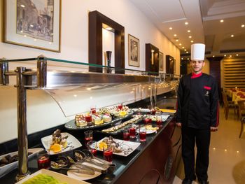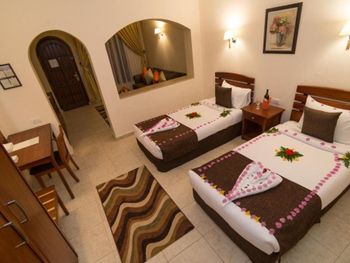 Номера потрепаны временем и качество уборки соответствует египетским трем звёздам. При заказе через Букинг типа все включено, алкогольные напитки не включены, возможно оно и к лучшему. Еда и напитки однообразны.