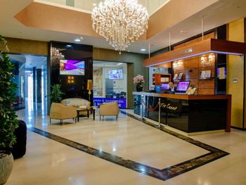 Отличное расположение, потрясающий вид на горы - все как на фото. Ресторан с террасой для завтраков с которого открываются панорамные виды на город. Смена полотенец, уборка, вода - каждый день