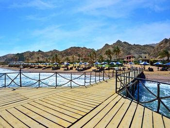 Четырехзвездочный отель Tropitel Dahab Oasis расположен на побережье залива Акаба. К услугам гостей частный пляж, открытый бассейн (подогревается в зимний период) и дайвинг-центр с видом на подводную пещеру «Голубая дыра».
