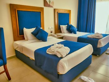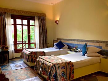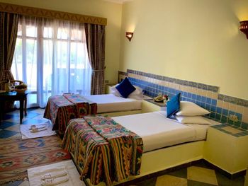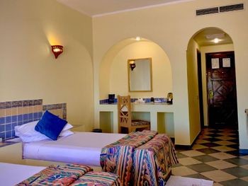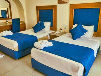 Ужасно. Отвратительно. Полный кошмар. Отель находиться далеко от города. Еда в отеле ужасна, просто кошмарна. ( Я бы отрубила руки их шеф повару)еда отвратительна , безвкусна. Я не ожидала что можно приготовить утку так, что ее вкус будет напоминать резиновый тапок, тоже самое я могу сказать и про курицу и в особенности про рыбу. Семья из трёх человек два взрослых и ребенок 4 лет. Было заплачено за троих, в итоге ребенку кровать не предоставили, ребенок спал на бетонной узкой лавочке и постоянно с нее падал, приходилось подкладывать одеяла и подушки чтоб было не больно падать, а у нас были две односпальные кровати ( и нет их нельзя сдвинуть они из бетона)сами матрасы очень неудобные( это были самые кошмарные три ночи в моей жизни), в комнате на полу был песок который оставался даже после уборки. Телевизор показывал один русский канал . Вай фай в отеле работает только в одном месте ,на ресепшен за 1,5$ . Если вы купите карточку в их магазине ,что тоже на рецепшен то он проработает максимум день, потом опять нужно платить , и каждый раз с вам будут сдирать по 100 лир , а то и больше. И отдельная рекомендация для семей с маленькими детьми, ни в коем случае туда не едьте, берег каменистый и постоянный ветер который создаёт волны и полностью исключает возможность зайти в море с ребёнком. Так что с детьми вам в Нувэйбу. На самом рынке в Дахабе вас постоянно хотят обмануть . Нужно торговаться ,от изначальной цены спускать до половины. Причем обманывают все от детей до стариков. Вернусь к описанию отеля персонал приветлив, но опять-таки все хотят денег. Оставил чаевые тебе улыбаются ,не оставил , улыбки не жди и собственно сервиса тоже. Не рекомендую , пожалуйста не едьте в это отель. Едьте или в сам Дахаб ,там есть очень много отелей по умеренной цене или уже в Нувэйбу там на само деле идеальное море. Там вы сможете купить нормальную еду и даже покупаться в море с детьми. Но не в коем случае ни в этот отель. Никогда вы слышите!!!! Никогда в этот отель не едьте .!!!!!!