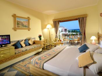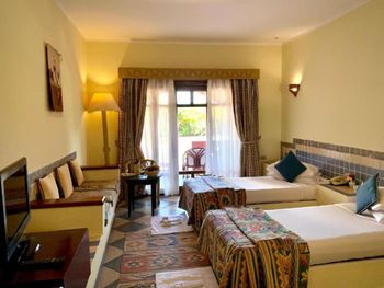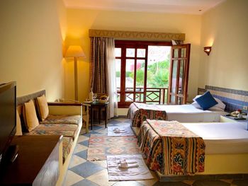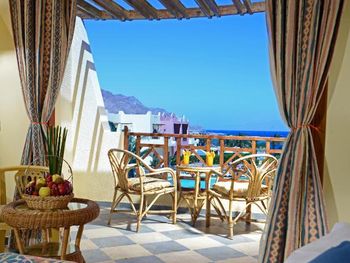 Гостям отеля Tropitel Dahab Oasis предлагаются номера с кондиционером, телевизором со спутниковыми каналами и балконом с видом на залив или пустыню.
