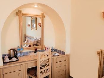 Овербукинг. Мы приехали ранним утром. Предыдущие сутки нами были оплачены, поэтому мы рассчитывали сразу же заселиться в наш номер side sea view room. Менеджер на ресепшн с каменным лицом повел нас в номер с видом на стоянку. Но не смог отпереть дверь. Замок был сломан. Вернулись на ресепшн. Менеджер нашел нам другой номер. Тот тоже оказался с видом на стоянку. В ответ на возмущение, сообщил, что в оплаченный нами номер он сможет перевести нас только после обеда из-за овербукинга. Мы потребовали в этом случае пересчитать стоимость номера. Эта идея ему не понравилась. После длительного спора стало очевидно, что мы не отступимся. В итоге нас поселили в номер категорией выше - sea view. Мы оказались в выигрыше, но на этом приключения не закончились. Единственный ключ от номера оказался сломан. Нам предложили пожить без ключа, пока не сделают дубликат. В обещание менеджера с ресепшн, что ключ будет готов через несколько часов, уже не очень то верилось. На следующий день мы все ещё ждали обещанного, когда повстречали некого пожилого технического сотрудника. Его прислали открыть нам номер мастер-ключом. Он, вникнув в проблему, тут же нашел решение: отдал нам ключ, которым пользуется клининг- сервис. Итог: отель все же лучше стандартной дахабской тройки, еда вкусная, но номера отчаянно требуют ремонта. В целом неплохо