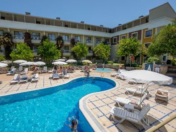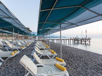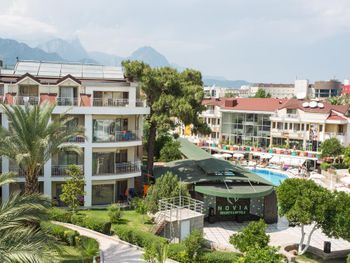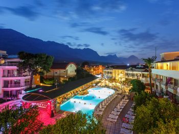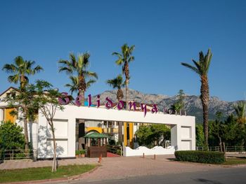 Отель Novia Gelidonya с обслуживанием по системе «все включено» удобно расположен всего в 150 метрах от пляжа. На территории отеля произрастают апельсиновые деревья. На заднем фоне возвышаются горы Таурус.