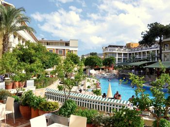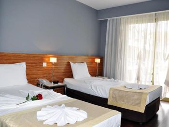 Курортный отель предоставляет для проживания 170 уютных номеров с самыми современными удобствами. С балконов номеров открывается вид на сад и далее море или горы на горизонте.