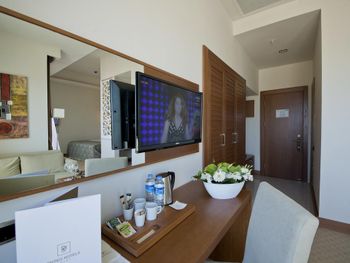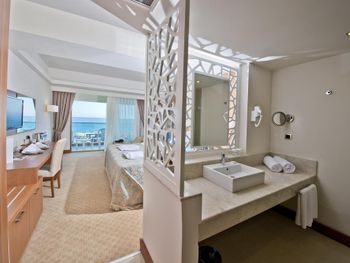 Большой просторный номер, есть вид и на море, и на горы. В целом у отеля немалая территория, и первая линия, конечно, радует. В лобби звучит приятная музыка (либо классика (Бетховен, Бах), либо джаз). Дружелюбный и отзывчивый персонал, говорят и на русском, и на английском. По вечерам проходят шоу, даже дождь не помеха:) Прекрасная кухня, особенно понравился grill house. На завтраке можно особо выделить мед в сотах и захватывающий процесс приготовления яичницы. Несколько локаций на территории, где делают отличные коктейли (и запоминают предпочтения). Кроме того, есть локации с мороженым, с десертами, с перекусами. Все очень вкусное:) Из приятных мелочей: можно взвесить чемодан перед выездом, чтобы не было неожиданностей в аэропорту. Выражаю особую благодарность Сабине из reception за оперативное решение вопросов и за прекрасный номер на третьем этаже.