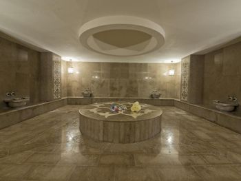 Очень грязно: что в столовой, что в спортзале, что в туалете возле бассейна, а в спа-зоне как будто вообще никогда не убирали - пустой бутылек от геля для душа валялся 2 дня подряд (сколько он там валяется на самом деле, одному богу известно), на кранах и дверцах душа скопился толстый слой известнякового налета. Видно, что персонала не хватает, а тот, что есть, не справляется с большим объемом работы. Нас было 4 человека (что было указано при бронировании на booking), а подушек, одеял, шампуней выдали только на двоих. Обращались на рецепшн - бесполезно. Вода из душа во время мытья выливается в ванную комнату, а затем в прихожую. В хамаме на полу вода, скользко, ребенок и моя мама упали, хотя все были в резиновых тапочках (хорошо, что без переломов, только синяки остались). За 16 лет, что мы отдыхали в отелях Анталии мы ни разу не падали в местных хамамах. Влажный пар включают через раз. В зоне с лежаками ободраны обои, чтобы все могли полюбоваться плесенью на стенах. Еще в спа-зоне очень навязчивый персонал, каждый раз пристают с платным массажом. И вообще на пляже, в самом отеле к вам будут постоянно приставать то с шубами, то с фотосессиями, то со спа-процедурами, то с поездками до Белека. Лифты нужно долго ждать, легче добраться по лестнице. У бассейнов нет спасателей, о чем предупреждают таблички. В целом, во всем складывается ощущение какой-то небрежности. Как будто отелю нужно было сначала сделать небольшой ремонт, привести все в порядок, хорошенько убраться (элементарно протереть грязные окна в ресторане), а уже потом открывать двери для гостей.