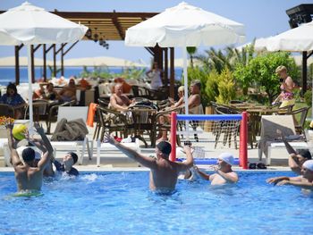 Несмотря на кучу минусов по организации удобств отелем, человек украшает место, а не наоборот) мы впервые вывезли дочку на море, от её восторгов от моря мы заряжались позитивом и были счастливы настолько, что на минусы не хотелось обращать внимания. Персонал дружелюбный, приветливый, радостный. Минусы написала объективно, нет смысла их скрывать. Но тем не менее мы отдохнули отлично, потому что наслаждались общением друг с другом, солнцем, морем:) Из плюсов: Алкоголь в баре довольно хороший; Номер понравился; Вода питьевая в доступе всегда; Персонал. Ехать в данный отель стоит, судя по нашему опыту, не ранее чем с 1 мая, даже попозже. Тогда они подключают все сервисы (горки, кафе, бар у пляжа, наверно, с питанием более разнообразно становится, анимация начинается). И это отель в разгар сезона молодежный, тусовочный, не Детский. Если бы мы попали в данный отель в тот период, когда он действительно полностью функционирует, думаю, я бы намного выше его оценила