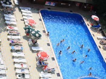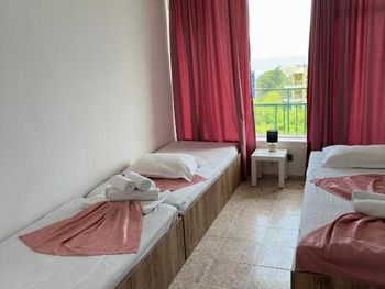 Отель соответствует своим 2 звездам. Назад в СССР. Комнаты старенькие, но уютные (без тараканов, плесени и трещин по стенам). До моря 5 минут пешком медленным шагом. Аквапарк вообще через дорогу (35 лев вход, но для разнообразия сходить можно). Персонал приветливый. Все покажут и расскажут. Говорят немного по английски, немецки и русски. Были на все включено, напитки с 10 до 22 бесплатные (сок, вода, газировка, чай, кофе, пиво, вино). Большой и чистый бассейн