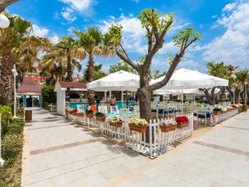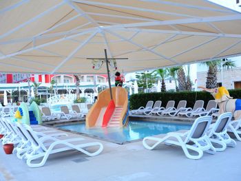 Очень маленькая территория отеля, еда такая однообразная, что на третий день даже не охота завтракать или обедать. Пляж и пирс всегда забит, что даже просто мест нету, хотя был в конце сезона. Гости в основном с рф, очень все не чистоплотно. Часто сморкаются и плюются в море, что даже не охота туда заходить.