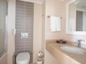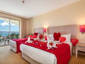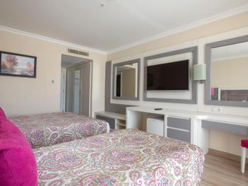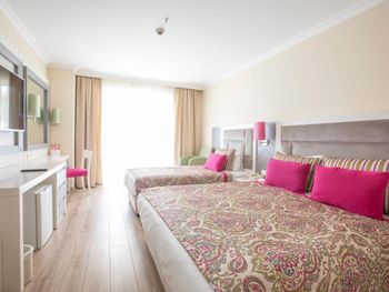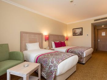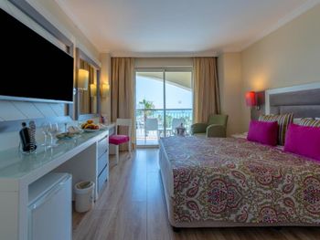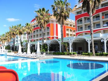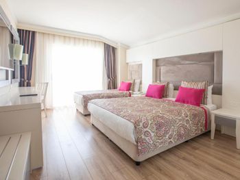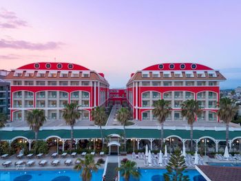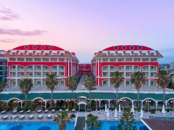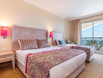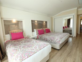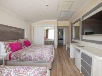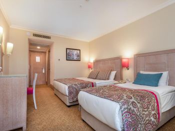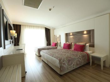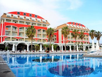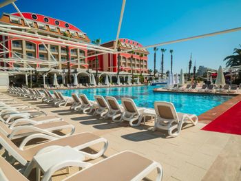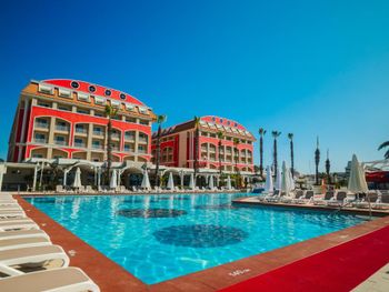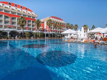 Хороший солидный отель с многими плюсами. Лучше всего нашему маленькому сыну понравился детский клуб, который открывается с 10 утра и работает до полуночи. Территория детского клуба хорошо закрыта и в нём работают одновременно несколько "воспитательниц". Детьми не только занимаются, но и устраивают им шоу в дневное время. Вечером есть тоже шоу - иногда для детей, иногда для всех. Перед главным вечерним шоу дети выходят потанцевать и потом начинается представление. Качеством шоу я в общем доволен - некоторые понравились, некоторые нет. Это дело вкуса и танцоров. Еда хорошая, турецкая, с итальянским уклоном (паста/пицца). Особенно хорошо здесь делают пиццу и булочные изделия. Печка расположена в ресторане и видимо повара умеют работать с тестом . Избегал этого как мог, но пару кусочков скушал. Вечером в самом дальнем углу есть другие интернациональные вкусности как азиатский рис, макароны или Чили кон Карне. Мне очень нравились турецкие закуски - антипасти, сыры, копчёная рыба и всякие пюре. Иногда на улице открывается гриль - этого многие не знают, но там можно тоже покушать того же дёнера, жареной рыбы или курочки - с запахом гриля. Десерты турецкие - тут каждый должен перепробовать что ему нравится. Иногда сладости похожи на что то европейское, но вкус другой. Советую брать кусочки поменьше 1/2 что бы распробовать что есть что. Номер чистый, просторный с балконом. Телевидение на русском и многих других языках. Хороший хамам, 2 финские и одна римская бани. Хороший спортзал - кардио и сила. Так же есть внутренний бассейн. Он конечно не сравним с внешним. Так же есть 3 разные горки для катания: красная закрученная, синея быстрая и зелёная - очень быстрая. Особенно хочу отметить что на горке всегда есть наблюдатель. Если его нет, то закрывается доступ. Спасатели ходят и по бассейну и пляжу. Есть хорошая детская зона бассейна с детскими горками - там не надо как родитель постоянно смотреть.