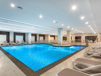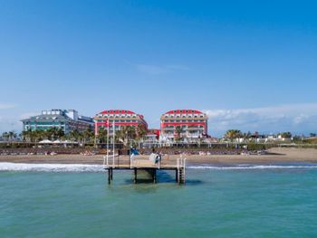 В теплое время года в отеле Orange County Belek - Family Concept работает большой открытый бассейн с водными горками. В спа-центре гости могут заказать сеанс массажа тела, отдохнуть в гидромассажной ванне или посетить сауну. На пляже установлен деревянный пирс.