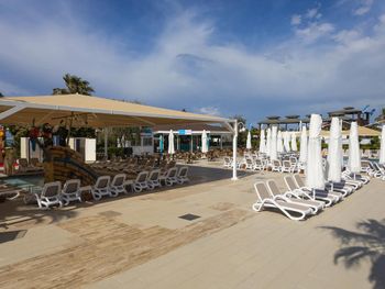 переехали из Оранж Канти в Окуджава, потому как тот отель закрывался на зиму. Поэтому смело могу сказать, что в Белеке все гораздо печальней. много людей весь день на одном пространстве, нет такого простора- тесно, куда не подойдешь. в ресторане, в баре или возле пирожных. причём возле входа и выхода на улицу- все стоЯт и курят- поэтому вечно воняет дымом. места на воздухе покушать мало- и тоже вокруг все курят. я бы рекомендовала разделить зоны пополам- для курящих и некурящих. к тому же на пляже на шезлонге не полежишь- солнце печет в голову- потому как навесы поснимали и на пляже много бездомных собак(. еда норм- вкусная. за кофе постоянно очередь. все шоу проходили внутри- мест не хватало, потому не было особого желания их посещать. несколько раз подходили поиграть в настольный теннис- опять же очередь, час прождали и ушли. потому как только один стол на такое большое количество людей. детский клуб- отдельная история. дети пошли и их нечем не могли занять аниматоры- просидели в телефонах, хотя меня очень подкупило, что площадка на свежем воздухе. я пару раз подошла к аниматорам и спросила, почему нет заявленных Активити- ответили скоро будут, но …. такое впечатление, что просто лень им было работать с детьми. вот посадили часть детей рисовать на футболках- платно и все. так что по сравнению с первым Оранжем- Оранж в Белеке я бы не рекомендовала.