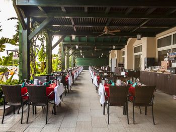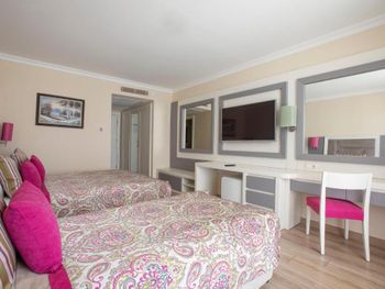 Очень маленькая территория отеля, устаревший интерьер. Зелёной зоны практически нет. Не понравилось что не было свежевыжатых соков. При входе в столовую было такое что Orange Juice - 3$. Ещё не понравилось, что на детской площадке был tip box, не понятно за что я должен платить. Пляжные полотенца можно менять только 1 раз в сутки. Штраф за утерю ключа от номера 10$, в других отелях такого не встречал. Не прошла оплата по карте Visa, пришлось платить наличными. Хотя в другом отеле все было ок.