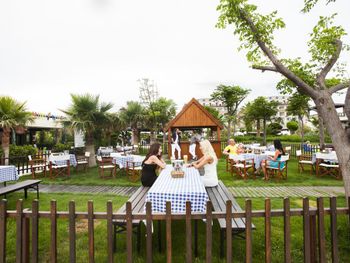 В отеле Orange County Belek работает несколько ресторанов. В баре у бассейна подают закуски и освежающие напитки.