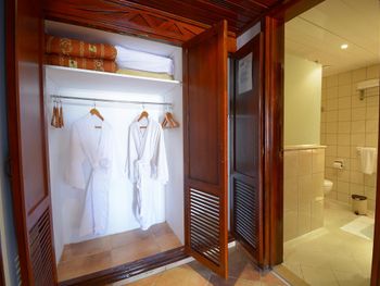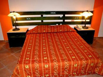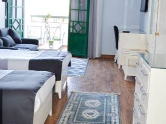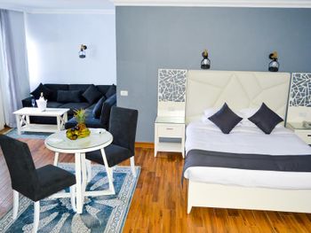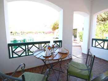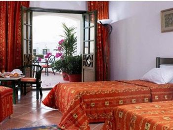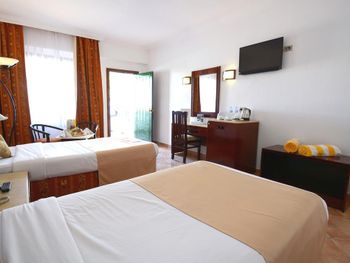 The rooms have a balcony while the suites have views of the pool area and palm trees. Each air-conditioned unit is fitted with a satellite TV, minibar and free Wi-Fi.