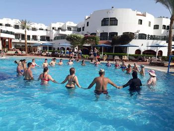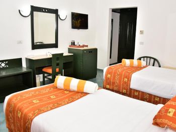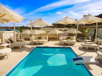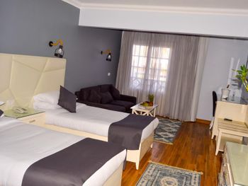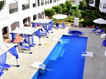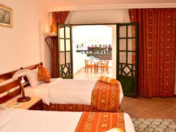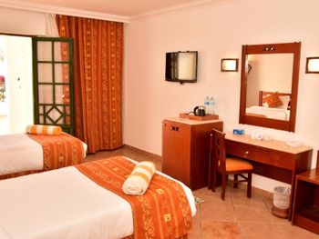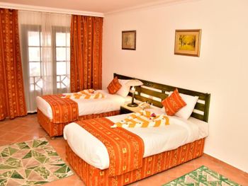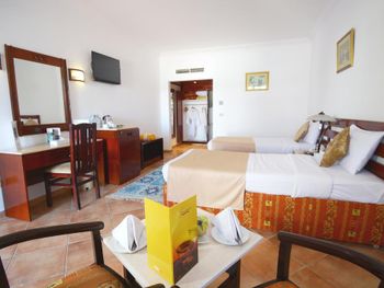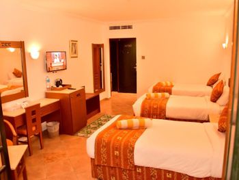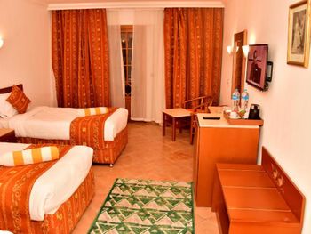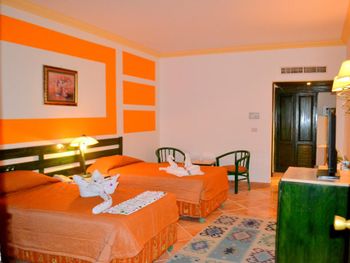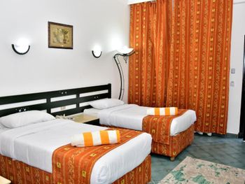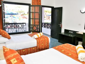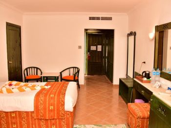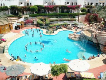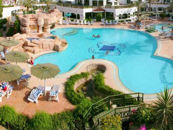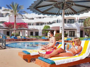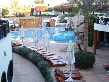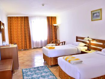 В целом отель неплох. Но надо учитывать то, что еда однообразная, каждый день одно и тоже, но голодными не останетесь. Есть всегда супы, яйца, мясо, рыба, по вечерам шашлык из курицы или баранины. У нас было включено доставка воды и соков в номер (на каждого гостя по 1,5 литра воды и 2 коробки сока), вначале носили как полагается, потом стали давать на одну бутылку и две коробки меньше, после обращения к управляющему отеля все нормализовалось. Все вопросы решаются очень быстро. Мебель и сантехника конечно ждет свой замены на новую. На пляж возит автобус, иногда два, зависит от кол-ва гостей, коралловый пляж шикарен, второй песчаный - для детей только. В отеле отдыхают в основном украинцы, арабы и из РБ.