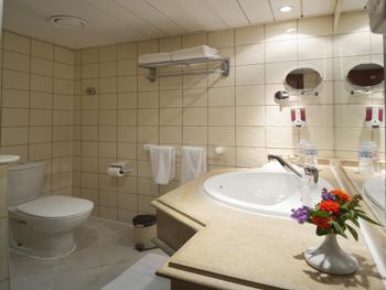 При заезде плохо убран номер. Слабый интернет в номере, да и в отеле в целом. Работа бассейна с 9 -00 до 18 00. (Я просыпаюсь рано и хотелось бы искупаться до наступления невыносимой жары).